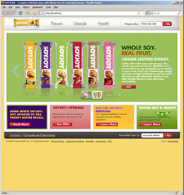 I was the main developer for the 2009 redesigned Soyjoy website. The site went live at around Christmas 2008 just in time for the 2009 New Year.